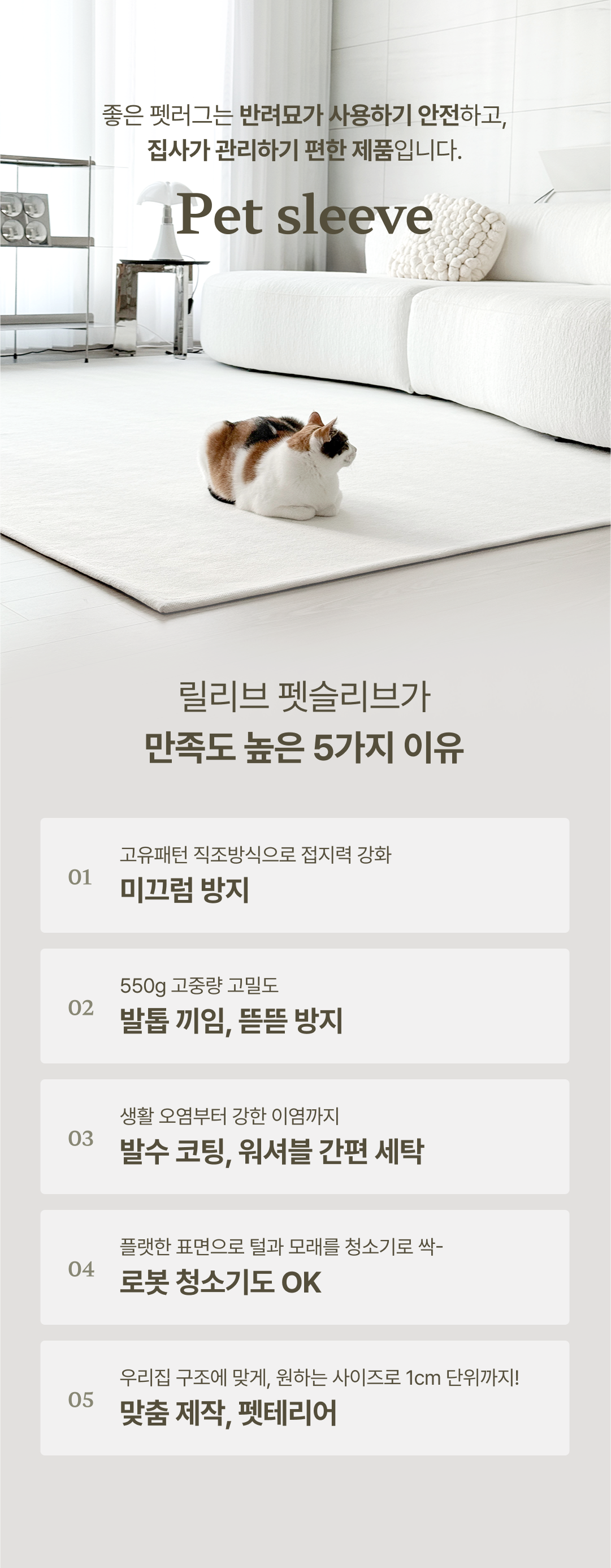 [반값특가] 릴리브 고양이 러그 미끄럼방지 스크래치방지 이지케어 펫슬리브 3세대